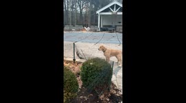 A squirrel's unexpected hammock leads to adorable puppy confusion! Watch our 5-month-old Golden Retriever, Ben, discover a squirrel relaxing in our garden netting. Ben's reaction is priceless. Don't worry, the squirrel was safely freed shortly after this video!