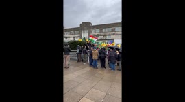 Pro-Kurdish demonstrators lead a protest amid clashes between Syria's government and the Syrian Democratic Forces. People gathered in front of Churchill Square in Brighton, a city in England’s South Coast, to call on the international community to support Kurdish forces. The city of Brighton is home to many Syrians.