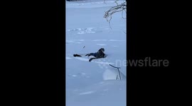 On January 21, 2026, in Huaibei, Anhui, Ms. Chen was hit in the back by a piece of snow while shovelling snow under the eaves. Right after she left, a large amount of snow on the roof rushed down like a waterfall.