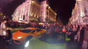 Footage has emerged of supercars blocking traffic in Piccadilly Circus, London, UK on Sunday night.