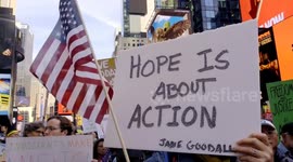 Protesting teachers in New York chant/sing "Donald Trump has got to go!"